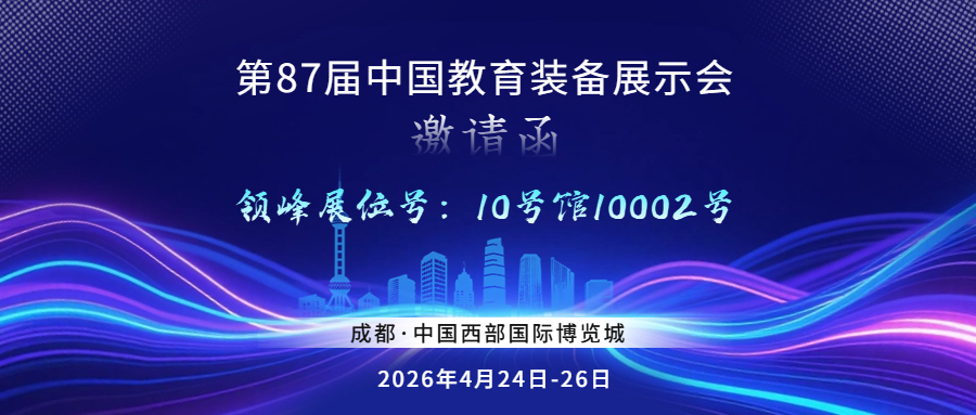 第 87 届中国教育装备展示会将于2026 年 4 月 24 日至 26 日,在 成都 中国西部国际博览城 盛大启幕。上海领峰诚挚邀请各位同仁与合作伙伴莅临领峰展位(10002号),现场交流指导。届时,我们将带来全系智慧实验室创新成果,与您共赴 AI 赋能教育的新征程。